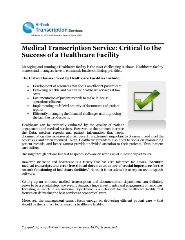 According to the bureau of labor statistics, employment of health information and medical healthcare information technology growing records technicians is expected to increase 20 percent by 2018; much . Medical transcription services are when medical reports are typed from dictated audio files by physicians, nurse practitioners, and other healthcare providers. doctors, nurse practitioners, surgeons, and other healthcare providers have important, stressful jobs.